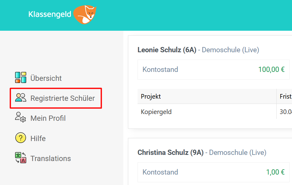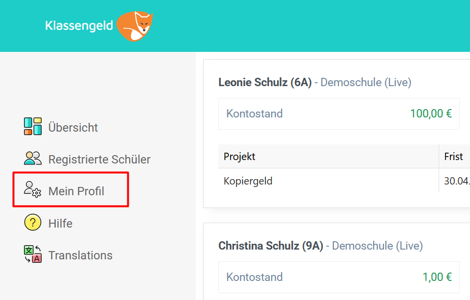 Das Elternportal ermöglicht den Eltern und Erziehungsberechtigten einen Überblick über alle Projekte, sowie die dazugehörigen Transaktionen. Außerdem können Zahlungsanforderungen selbst heruntergerladen und somit beglichen werden.